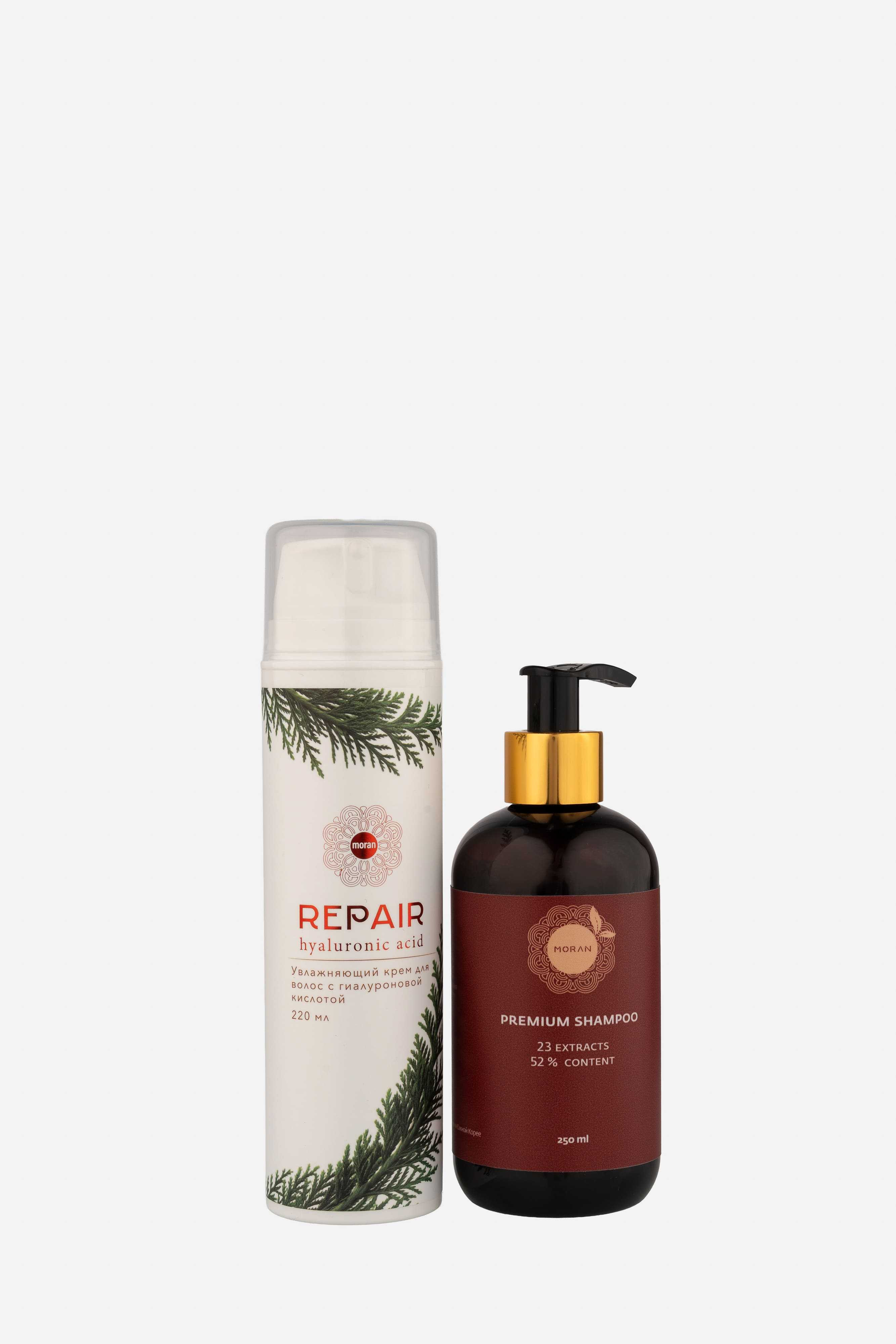 Набор "Для отдыха Moran Premium" Шампунь 250мл и Крем с гиалуроновой кислотой 220 мл